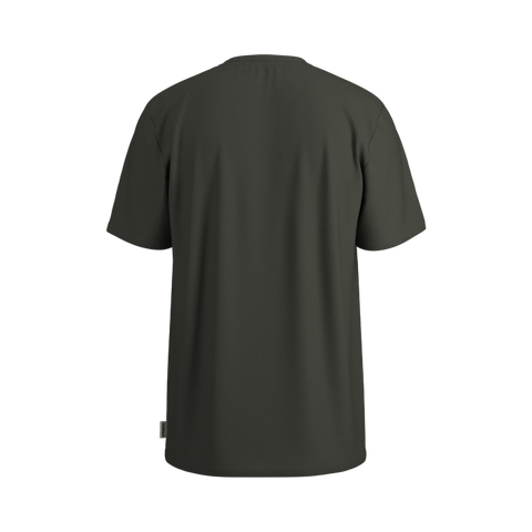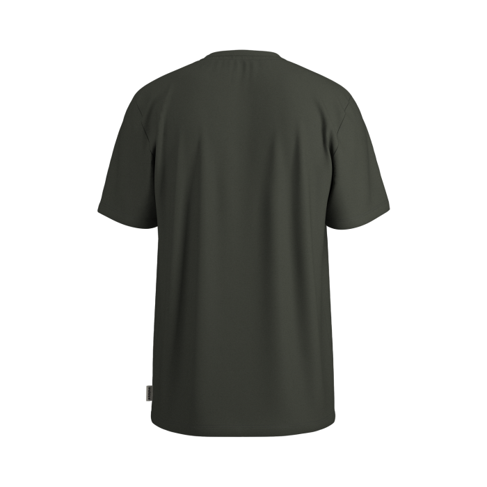 Basic T-Shirt in normaler Passform aus Bio-Baumwolle. Das Berg-Aquarell mit Ski stammt aus der Feder unserer Mitarbeiterin Anne-Sophie.